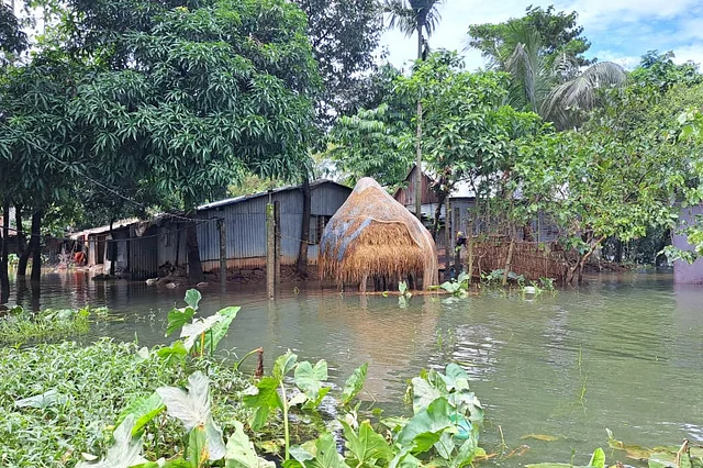 রাশেদা ডুকরে কেঁদে উঠলেন। বললেন, ‘ঈদের আগের রাইত ১০ বছরের মাইয়াটা ঘুমের মইধ্যে গড়াইয়া চৌকির নিচে পড়ে। তার চিক্কুর শুইনা জাইগা দেখি, ঘরে হাঁটুপানি। কুনুরকমে জান লইয়া গেরামের পাশের বালুর স্টেকে (স্তূপ) যাই। আইজ (গতকাল) ফিরছি। কাপড়চোপড়-লেপ-তোশক ভিইজা নষ্ট অই গেছে। পাকঘর, ডেগ-ডেচকি আফালে ভাসাইয়া নিয়া গেছে, ঘরের বেড়াও ভাঙছে। কি-লা যে চলতাম, খাইতাম! বানের মেঘে (বৃষ্টি) ভিইজা জ্বর আইছে। ডাক্তর দেখাইবারও ট্যাকা নাই!