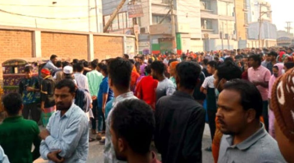 আশুলিয়ার বিশমাইল-জিরাবো আঞ্চলিক সড়কের আমতলা মোড় এলাকায় অবস্থান নিয়ে বিক্ষোভ করেন ছেইন অ্যাপারেলস লিমিটেড কারখানার বিক্ষুব্ধ শ্রমিকরা।