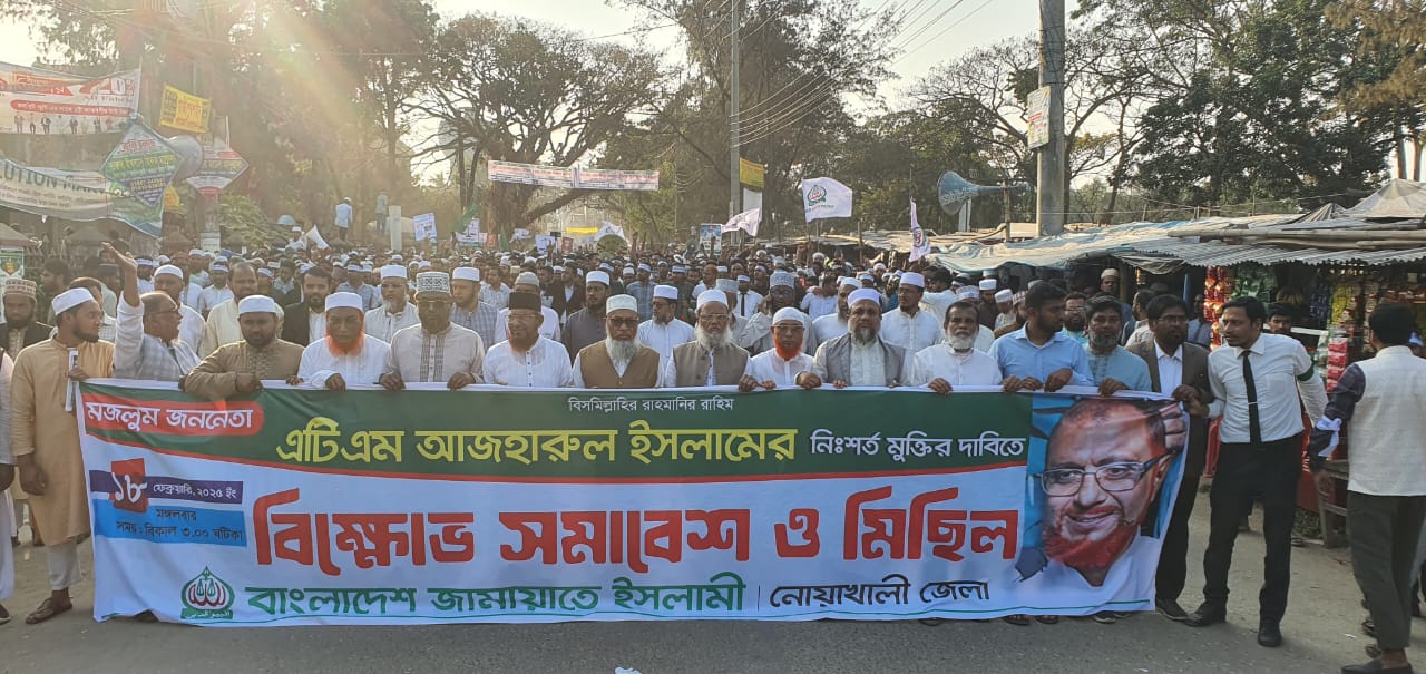 মঙ্গলবার বিকালে নোয়াখালী জেলা আইনজীবি সমিতির সামনে, জেলা জামাতের আয়োজনে,জামাতের নেতা এ,টি,এম আজহার ইসলামের মুক্তির দাবীতে বিক্ষোভ সমাবেশের প্রধান অতিথির বক্তব্যে তিনি এসব কথা বলেন