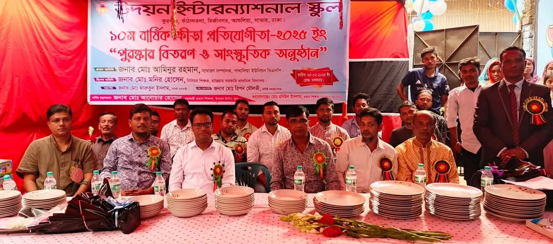 ঢাকার অদুরে সাভার উপজেলা আশুলিয়া থানাধীন পাথালিয়া ইউনিয়ন ৩নং ওয়ার্ড কুরগাঁও কাঁঠালতলায় অবস্থিত উদয়ন ইন্টারন্যাশনাল স্কুলে বিশিষ্ট ব্যবসায়ী ও শিক্ষানুরগি মোঃ ফারুকুল ইসলামের সভাপতিত্বে মঙ্গলবার ২৫ ফেব্রুয়ারি ২০২৫ইং (১২ ফাল্গুন-১৪৩১ বঙ্গাব্দ) রোজ মঙ্গলবার সকাল ৮:৩০ ঘটিকায় উদয়ন ইন্টারন্যাশনাল স্কুলে পবিত্র কোরআন তেলাওয়াতের মধ্য দিয়ে বার্ষিক ক্রীড়া প্রতিযোগিতা ও পুরুষ্কার বিতরন অনুষ্ঠান অনুষ্ঠিত হয়।