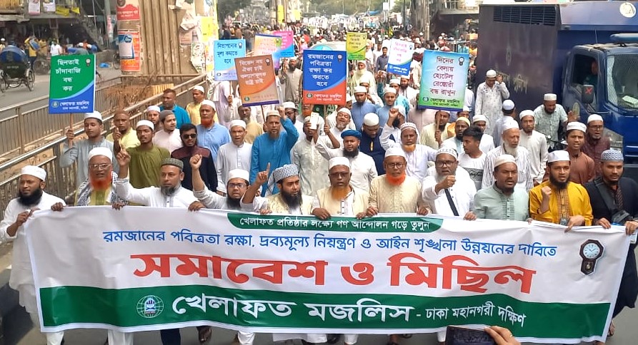 জনগণকে আহ্বান জানাতে চাই, রমজানের পবিত্রতা বিনষ্ট হয় এমন কার্যক্রম থেকে নিজেরা বিরত থাকি এবং অন্যকেও বিরত রাখি। আল্লাহ আমাদের সহায় হোন। আজ বাদ জুমআ খেলাফত মজলিস ঢাকা মহানগরী দক্ষিণ শাখার উদ্যোগে মাহে রমজানের পবিত্র রক্ষার আহ্বান জানিয়ে বিক্ষোভ মিছিল পরবর্তি সমাবেশে প্রধান অতিথির বক্তব্যে আমীরে মজলিস উপরোক্ত বক্তব্য প্রদান করেন।