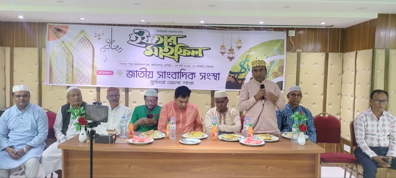 সাংবাদিকদের আস্থা,জাতীয় সাংবাদিক সংস্থা এই স্লোগান কে সামনে রেখে রমজানের আর্দশ বজায় রেখে সারা দেশের ন্যায় কুমিল্লা জেলা শাখার আয়োজনে কুমিল্লা নগরীর কান্দিড়পাড়স্থ জমজম টাওয়ার গোল্ডেন স্পুনে ১৪ ই মার্চ শুক্রবার ইফতার মাহফিল অনুষ্ঠিত হয়। উক্ত ইফতার মাহফিলে কুমিল্লা জেলা শাখার সভাপতি সাংবাদিক মোঃতরিকুল ইসলাম তরুনের সভাপতিত্বে সংগঠনের সাধারণ সম্পাদক সাংবাদিক মোঃ জুয়েল রানা মজুমদারের সঞ্চালনায় প্রধান অতিথি বক্তব্য রাখেন জাতীয় সাংবাদিক সংস্থার কুমিল্লা জেলা শাখার উপদেষ্টা সাংবাদিক ও কলামিস্ট শাহাজাদা এমরান, প্রধান বক্তা হিসেবে উপস্থিত ছিলেন সংগঠনের অন্যতম উপদেষ্টা ও সিটিভি নিউজ এর সম্পাদক ওমর ফারুকী তাপস, বিশেষ অতিথির বক্তব্য রাখেন বিশিষ্ট ক্রীড়াবিদ মাহাবুবুল আলম চপল,সংগঠনের অন্যতম উপদেষ্টা দৈনিক ইনকিলাবের স্টাফ রিপোর্টার সাদিক মামুন, দৈনিক প্রথম আলোর কুমিল্লা জেলা প্রতিনিধি আবদুর রহমান, অধ্যক্ষ এনামুল হক, বিভাগীয় সাধারণ সম্পাদক মোঃ শাহজালাল সজিব, জেলা শাখার সহ-সভাপতি সাংবাদিক বাবর হোসেন,সহ-সভাপতি ফেরদৌস মাহমুদ মিঠু, সহ-সভাপতি,আবদুর রহিম, সহ- সভাপতি,ডাঃ জয়দল হোসেন, সহ-সভাপতি ও এনটিভির চৌদ্দগ্রাম উপজেলা প্রতিনিধি মনোয়ার হোসেন, যুগ্ম সাধারণ, রেজাউল করিম,সাংগঠনিক সম্পাদক কামরুজ্জামান, সাংগঠনিক সম্পাদক, দেলোয়ার হোসেন,যুগ্ম সাধারণ সম্পাদক যুগান্তর প্রতিনিধি, ইকবাল হোসেন, বুড়িচং উপজেলা সভাপতি সৌরভ মাহমুদ হারুন, চৌদ্দগ্রাম উপজেলা সভাপতি আবু বকর সুজন, সহ-সভাপতি ইউসুফ মজুমদার, মহিলা সম্পাদিকা সাংবাদিক আয়েশা,নির্বাহী সদস্য মাইনুল হক স্বপন,অর্থসম্পাদক নারায়ণ কুন্ড, সদস্য শাহদাৎ কামাল সাকিল, মাহবুবুল আলম রুমি, সহ সকল নেতৃবৃন্দ।