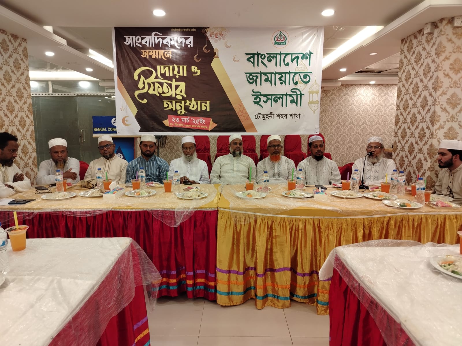নোয়াখালীতে সাংবাদিকদের সম্মানে দোয়া ও ইফতার অনুষ্ঠান আয়োজন করেছে বাংলাদেশ জামায়াতে ইসলামী চৌমুহনী শহর শাখা।