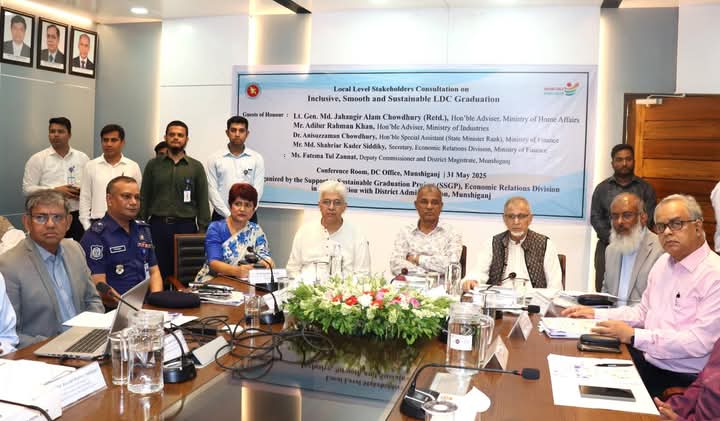 মোঃ সুজন বেপারী - মুন্সিগঞ্জে স্বল্পোন্নত দেশের (এলডিসি) তালিকা থেকে অন্তর্ভুক্তিমূলক, মসৃণ ও টেকসই উত্তরণ নিশ্চিত করতে অনুষ্ঠিত হয়েছে এক পরামর্শমূলক কর্মশালা। শনিবার (৩১ মে) জেলা প্রশাসকের সম্মেলন কক্ষে এ কর্মশালার আয়োজন করা হয়।