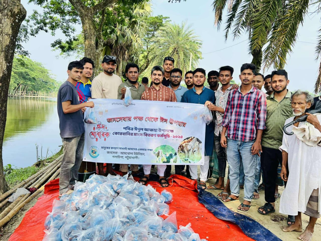 পটুয়াখালীর গলাচিপা উপজেলার আমখোলা ইউনিয়নের ৪, ৫ ও ৬ নম্বর ওয়ার্ডে ঈদুল আজহার আনন্দ ভাগাভাগি করতে গরিব, অসহায় ও সুবিধাবঞ্চিত মানুষের মাঝে কোরবানির মাংস বিতরণ করেছে স্থানীয় সামাজিক সংগঠন জনসেবা সংগঠন।
