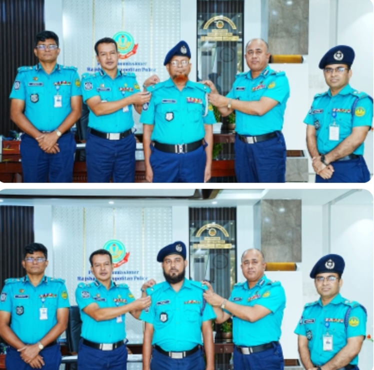 রাজশাহী মেট্রোপলিটন পুলিশের সদর দপ্তরে অনুষ্ঠিত এক অনাড়ম্বর অনুষ্ঠানে আরএমপির পুলিশ কমিশনার মোহাম্মদ আবু সুফিয়ান পদোন্নতিপ্রাপ্ত দুই কর্মকর্তাকে র্যাংক ব্যাজ পরিয়ে দেন।