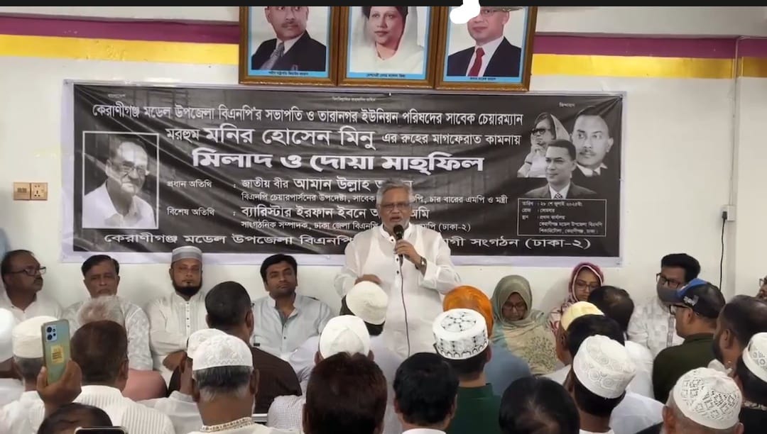 কেরানীগঞ্জে বিএনপি নেতা মনির হোসেন মিনুর রুহের মাগফেরাতে মিলাদ ও দোয়া মাহফিল অনুষ্ঠিত:
