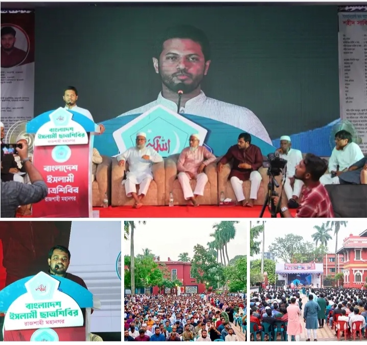 জুলাই অভ্যুত্থানের অন্যতম শহীদ, রাজশাহী মহানগর শাখা ছাত্রশিবিরের সাংগঠনিক সম্পাদক আলী রায়হানের প্রথম শাহাদাতবার্ষিকী উপলক্ষে আলোচনা সভা ও দোয়া মাহফিলের আয়োজন করে বাংলাদেশ ইসলামী ছাত্রশিবির রাজশাহী মহানগর।