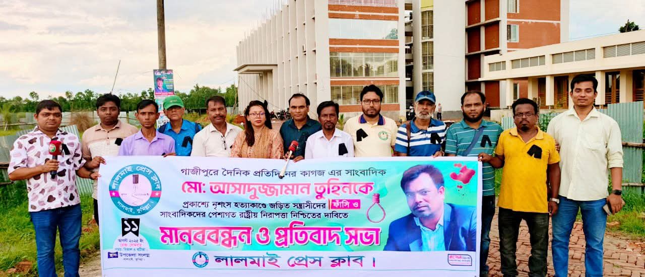 সাংবাদিক তুহিন হত্যার প্রতিবাদে লালমাই প্রেসক্লাবের মানববন্ধন