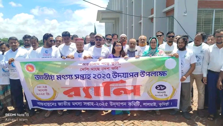 "অভয়াশ্রম গড়ে তুলি, দেশি মাছে দেশ ভরি”এ প্রতিপাদ্যকে সামনে রেখে জাতীয় মৎস্য সপ্তাহ- ২০২৫ উদ্বোধন উপলক্ষে লালমাই উপজেলা মৎস্য অধিদপ্তর ও জাতীয় মৎস্য সপ্তাহ উদযাপন কমিটির আয়োজনে জাতীয় মৎস্য র্যালী,আলোচনা সভা ও পুরস্কার বিতরণ অনুষ্ঠিত হয়েছে।