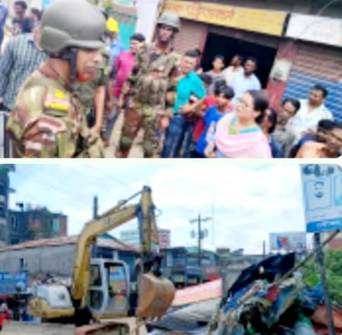 বাগমারা বাজারে মাইকিং করে অবৈধ স্থাপনা উচ্ছেদ অভিযান করেন লালমাই ইউএনও হিমাদ্রী খীসা