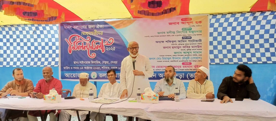মানব কল্যাণের জন্য ঐক্য এই প্রতিপাদ্য কে সামনে রেখে ভলান্টিয়ার্স এসোসিয়েশন অব বরুড়া (ভাব) এর উদ্যোগে স্বেচ্ছাসেবীদের মিলনমেলা ২০২৫ অনুষ্ঠিত হয়েছে। ৪ঠা অক্টোবর সকাল দশটায় বরুড়া পৌরসভার দেওড়া শাইনরোজ ফিসারিজে সংগঠনের সভাপতি তিতাস উপজেলা মাধ্যমিক শিক্ষা অফিসার মোঃ মিজানুর রহমান ভুঁইয়ার সভাপতিত্বে অনুষ্ঠানে প্রধান অতিথি হিসেবে উপস্থিত ছিলেন বারভিডার সভাপতি ও শাহের বানু আইডিয়েল স্কুল এন্ড কলেজের প্রতিষ্ঠাতা আবদুল হক,প্রধান আলোচক হিসেবে উপস্থিত ছিলেন প্রাক্তন যুগ্ম সচিব বাবু মনিন্দ্র কিশোর মজুমদার।