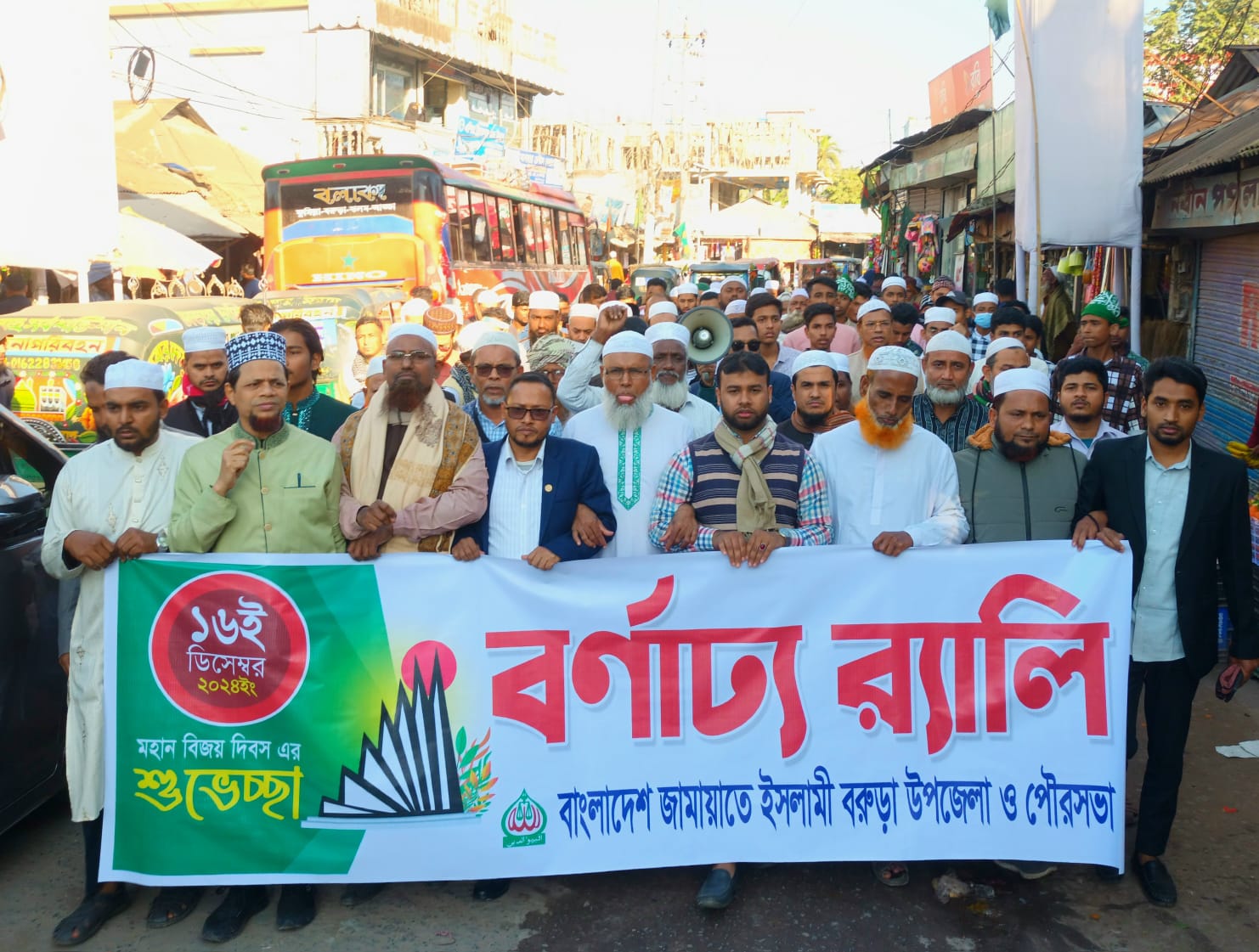 কুমিল্লার বরুড়ায় মহান বিজয় দিবস উপলক্ষে বরুড়া উপজেলা ও পৌরসভা জামায়াতে ইসলামীর উদ্যোগে বর্ণাঢ্য র্যালি অনুষ্ঠিত হয়েছে।