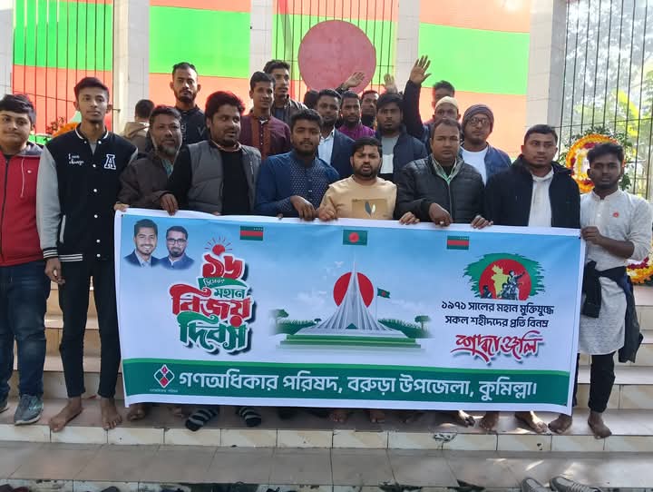 আজ রোজ রবিবার ১৬ ডিসেম্বর ২০২৪ ইং মহান বিজয় দিবস উপলক্ষে বরুড়া উপজেলার গনঅধিকার পরিষদের বিজয় মিছিল অনুষ্ঠিত হয়।