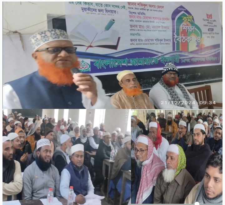 তিনি আজ ২১ শে ডিসেম্বর সকাল ৭.৩০ ঘটিকার সময় বাংলাদেশ জামায়াতে ইসলামী বরুড়া উপজেলার ১৫ নং পয়ালগাছা ইউনিয়ন আয়োজিত বাছাইকৃত কর্মীদের শিক্ষা বৈঠকে প্রধান অতিথির বক্তব্যে এসব কথা বলেন। ইউনিয়ন আমীর মাওঃ শফিকুল ইসলামের সভাপতিত্বে এবং ইউনিয়ন সেক্রেটারি হাফেজ জসিমউদদীন এর সঞ্চালনায় উক্ত শিক্ষা বৈঠকে বিশেষ অতিথির বক্তব্য রাখেন বাংলাদেশ জামায়াতে ইসলামীর বরুড়া উপজেলার আমীর মাওলানা শাহাদাত হোসেন, উপজেলা সেক্রেটারি মাওঃআবুল কাশেম উপজেলা সহকারী সেক্রেটারি ডাঃমুজিবুর রহমান বরুড়া উপজেলা ওলামা বিভাগের সভাপতি মাওঃ নজরুল ইসলাম সহ স্হানীয় নেতৃবৃন্দ।