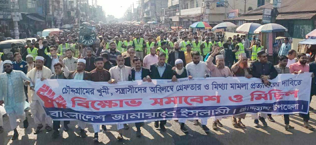 শনিবার (২৮ ডিসেম্বর) সকালে বিক্ষোভ মিছিলটি ঢাকা-চট্টগ্রাম মহাসড়কের চৌদ্দগ্রাম বাজার অংশের গুরুত্বপূর্ণ স্থানগুলো প্রদক্ষিন শেষে হায়দার শপিং কমপ্লেক্সের সামনে এসে সংক্ষিপ্ত সমাবেশের মাধ্যমে সমাপ্ত হয়।