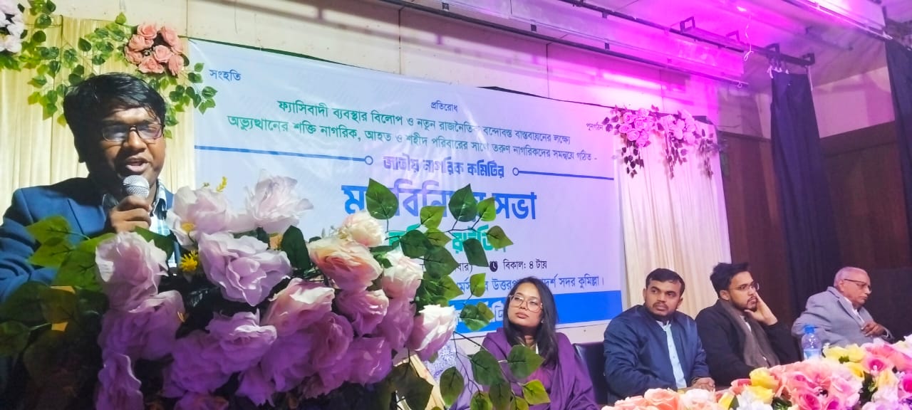 গণঅভ্যুত্থানে আহত ও শহীদ পরিবারের সাথে জাতীয় নাগরিক কমিটির মতবিনিময় সভা (২৮ ডিসেম্বর) বিকাল ৫টায় নজরুল ইন্সটিটিউট কেন্দ্র কুমিল্লায় অনুষ্ঠিত হয়। জাতীয় নাগরিক কমিটির সদস্য হাফছা জাহানের সভাপতিত্বে প্রধান অতিথি হিসিবে উপস্থিত ছিলেন- জাতীয় নাগরিক কমিটির যুগ্ম মুখ্য সংগঠক আতাউল্লাহ, কেন্দ্রীয় সংগঠক মিশমা সাগুফতা বুশরা, কেন্দ্রীয় সদস্য জয়নাল আবেদীন শিশির, কেন্দ্রীয় সদস্য ফারজানা সাদিয়া দিনা, বৈষম্য বিরোধী ছাত্র আন্দোলন কুমিল্লা জেলার সদস্য সচিব জিয়াউদ্দিন রুবেল, কুমিল্লা মহানগরীর আহ্বায়ক আবু রায়হান, সদস্য সচিব রাশেদ হাসান, বৈষম্য বিরোধী ছাত্র আন্দোলন কুমিল্লা'র মুখপাত্র ইমপা ফারহা, কুমিল্লা ক্যান্টমেন্ট স্পোটে ছাত্র আন্দোলন অসীম সাহসী ভুমিকা রেখেছিলো গুলিবিদ্ধ হয়েছিলো সংগঠক ও তরুণ উদ্যোক্তা সৈয়দ মুহাম্মদ রুবেল, বিশিষ্ট চড়াকার জহিরুল হক দুলাল, মতবিনিময় সভায় ফ্যাসিষ্ট কর্তৃক আহত সাংবাদিক এম.কে নুর আলম, জাতীয় নাগরিক কমিটির সদস্য ফজলে এলাহী রুবেলসহ অন্যান্যরা। বক্তরা বলেন- তারুণ্যের বাংলাদেশে ফ্যাসিষ্টদের কোন ঠাঁই নেই। পলাতক খুনি হাসিনাকে অবিলম্বে বাংলাদেশে এনে আইনের মুখোমুখি দাঁড় করাতে হবে। আসুন সকল পেশাজীবি নাগরিকদের নিয়ে দুর্বার আন্দোলন গড়ে তুলি, কোন ভাবে যেন নতুন বাংলাদেশে পূর্বের স্বৈরাচার ফ্যাসিষ্ট দ্বারা আক্রান্ত না হয়। জুলাইয়ের গণঅভ্যুত্থানে যারা শহীদ বা আক্রান্ত হয়েছে তাদের পরিবার বা আহত ব্যক্তিরা কোন ভাবে যেন অবহেলিত না হয় সেদিক আমাদে খেয়াল রাখতে হবে। আমাদের সকলকে ঐক্যবদ্ধভাবে হাতে হাত রেখে তারুণ্যের হাত দিয়ে নতুন বাংলাদেশকে দুর্নীতিমুক্ত বাংলাদেশ হিসেবে গড়ে তুলি। দেশের ছাত্র জনতা শিশু হত্যার বিচার এ সরকারকে করতে হবে। পুনঃসংস্কার ছাড়া দেশে কোন প্রকার নির্বাচন নয়।
