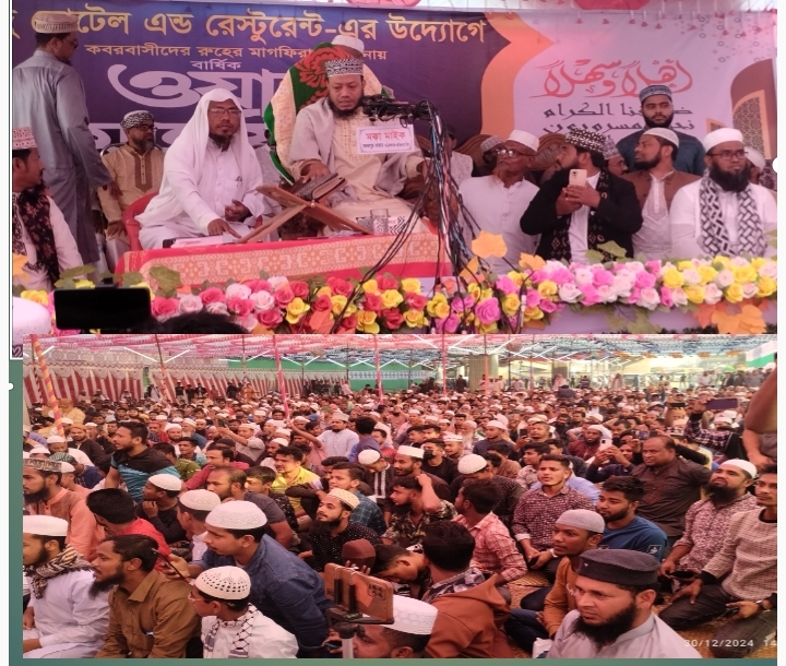 কুমিল্লা পদুয়ার বাজার বিশ্ব রোড ঢাকা চট্টগ্রাম হাইওয়ে রোড সংলগ্ন ছন্দু হোটেল এন্ড রেষ্টুরেন্টের উদ্যোগে আয়োজিত তাফসীরুল কোরআন মাহফিলে সকাল ১০ টা থেকেই ফ্যান্ডেলের মধ্যে মানুষে পরিপূর্ণ। বাদ যোহর থেকে আলোচনা রাখছেন মুফতি আমীর হামযা।