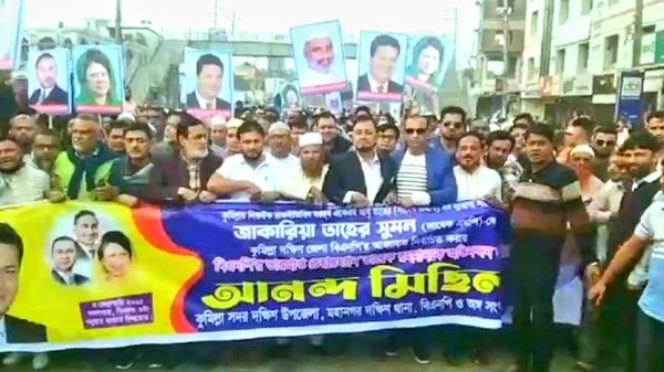 মোঃ হারিসুর রহমান কুমিল্লা পদুয়ার বাজার বিশ্বরোড হাজী আকরাম উদ্দিন স্কুলএন্ড কলেজ সংলগ্ন কুমিল্লা মহানগর দক্ষিণ ও সদর দক্ষিণ উপজেলা বিএনপির অঙ্গ সংগঠন কর্তৃক মঙ্গলবার( ০৪ফেব্রুয়ারি ২০২৫) বিশাল আনন্দ মিছিল