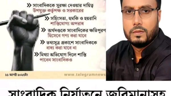 পেশাগত দায়িত্ব পালনরত সাংবাদিকদের বিরুদ্ধে হুমকি ও হয়রানি নির্যাতনে সর্বোচ্চ ৫ বছরের জেল।