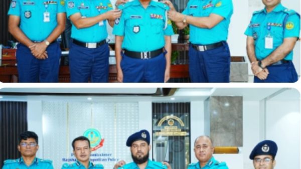 আরএমপিতে পদোন্নতিপ্রাপ্ত দুই কর্মকর্তাকে র্যাংক ব্যাজ পরিয়ে দেন পুলিশ কমিশনার পাভেল ইসলাম মিমুলঃ রাজশাহী প্রতিনিধি রাজশাহী মেট্রোপলিটন পুলিশের সদর দপ্তরে অনুষ্ঠিত এক অনাড়ম্বর অনুষ্ঠানে আরএমপির পুলিশ কমিশনার মোহাম্মদ আবু সুফিয়ান