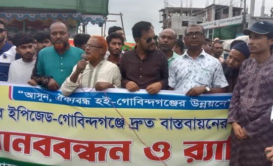 দ্রুত রংপুর ইপিজেড বাস্তবায়নের দাবীতে গোবিন্দগঞ্জের দেড় ঘন্টা ধরে সড়ক অবরোধ সাজাদুর রহমান সাজু স্টাফ রিপোর্টার রংপুর রপ্তানি প্রক্রিয়াকরণ এলাকা (আরইপিজেড) গোবিন্দগঞ্জ উপজেলার সাহেবগঞ্জ ইক্ষু খামারের প্রস্তাবিত এলাকায় দ্রুত বাস্তবায়নের