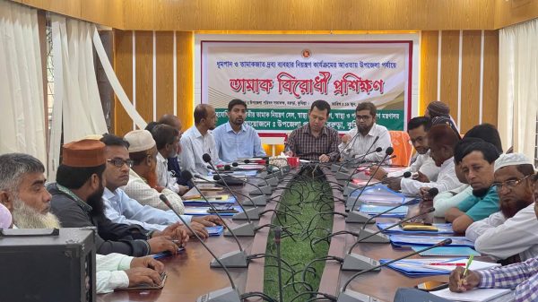 বরুড়া উপজেলা প্রশাসন কতৃক তামাক বিরোধী প্রশিক্ষণ কর্মশালা মোঃ ইকরামুল হক, স্টাফ রিপোর্টার,বরুড়া, কুমিল্লা জেলার বরুড়ায় ধূমপান ও তামাকজাত দ্রব্য ব্যবহার নিয়ন্ত্রণ কার্যক্রমের আওতায় উপজেলা পর্যায়ে তামাক বিরোধী প্রশিক্ষণ কর্মসূচী