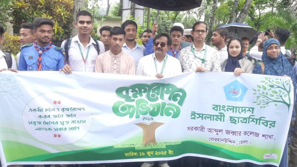 ভোলার বোরহানউদ্দিনে বৃক্ষ রোপণ কর্মসূচি পালন করল ছাত্রশিবির মোঃ আশিক পণ্ডিত : বোরহানউদ্দিন (ভোলা) সংবাদদাতাঃ “একটি হলেও বৃক্ষরোপন করব জনে জনে, সবুজ দেশের সুস্থ বাতাস লাগুক সবার প্রাণে” এই স্লোগানকে