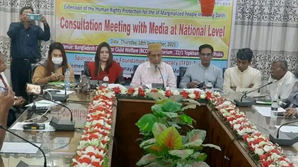 নিজস্ব প্রতিবেদক : ঢাকা, ১৮ সেপ্টেম্বর ২০২৫: বাংলাদেশের প্রান্তিক জনগোষ্ঠী, বিশেষ করে দলিত সম্প্রদায়ের অধিকার সুরক্ষা ও মৌলিক চাহিদা পূরণকে কেন্দ্র করে রাজধানীর তোফাখানা রোডস্থ বাংলাদেশ শিশু কল্যাণ পরিষদ মিলনায়তনে
