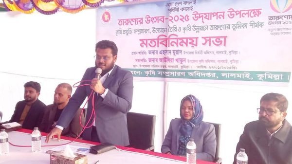 মোস্তফা কামাল মজুমদার “এসো দেশ বদলাই, পৃথিবী বদলাই ” এ স্লোগান নিয়ে লালমাই উপজেলা কৃষি সম্প্রসারণ অধিদপ্তরের আয়োজনে তারুণ্যের উৎসব -২০২৫ উদযাপন উপলক্ষে কৃষি প্রযুক্তি সম্প্রসারণ, উদ্যোক্তা তৈরি ও কৃষি