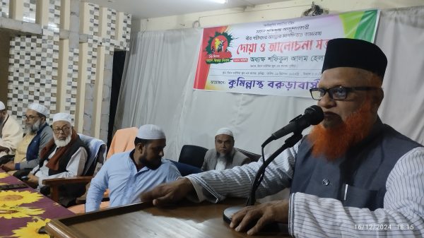 ১৬ ডিসেম্বর ২৪ সোমবার সন্ধ্যা ৫:৩০ ঘটিকার সময় কুমিল্লা ইবনে তাইমিয়া স্কুল এন্ড কলেজ মিলনায়তনে কুমিল্লাস্থ বরুড়া বাসি সদস্যদের কে নিয়ে মহান মুক্তিযুদ্ধে নিহত শহীদদের স্মরণে দোয়া ও আলোচনা সভা