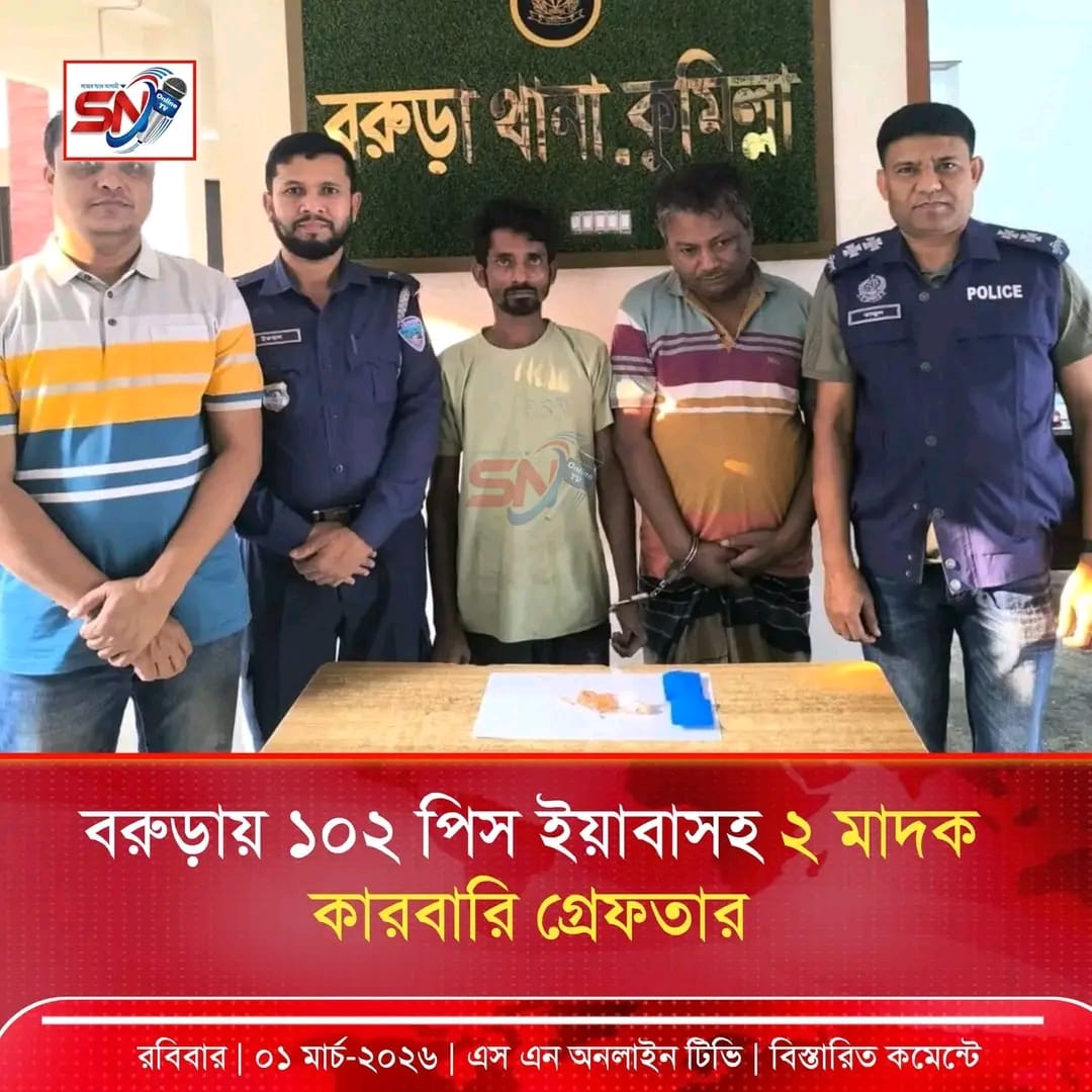বরুড়ায় ১০২ পিস ইয়াবাসহ ২ মাদক কারবারি গ্রেফতার!